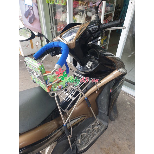 Ghế ngồi xe máy được làm từ khung inox chắc chắn,không gỉ sét, phù hợp với tất cả các dòng xe máy hiện nay.Ghế ngồi có thiết kế không cần bắt ốc vít nên không tốn thời gian lắp đặt nhưng vẫn đảm bảo độ an toàn và chắc chắn , dễ dàng điều chỉnh cho phù hợp với từng bé Thông tin về ghế ngồi xe máy : nặng 1300g _Chất liệu : Khung làm bằng ionx không gỉ, đệm ngồi êm ái ,giúp bé thoải mái khi ngồi lâu Dành cho bé 8 tháng đến 6 tuổi, tùy cân nặng Trọng lượng cho phép tối đa: 30kg _ Thiết kế phù hợp các loại phổ biến hiện nay. Tùy thuộc vào loại xe máy đang sử dụng , bố mẹ hãy mua mã sản phẩm phù hợp nhé.