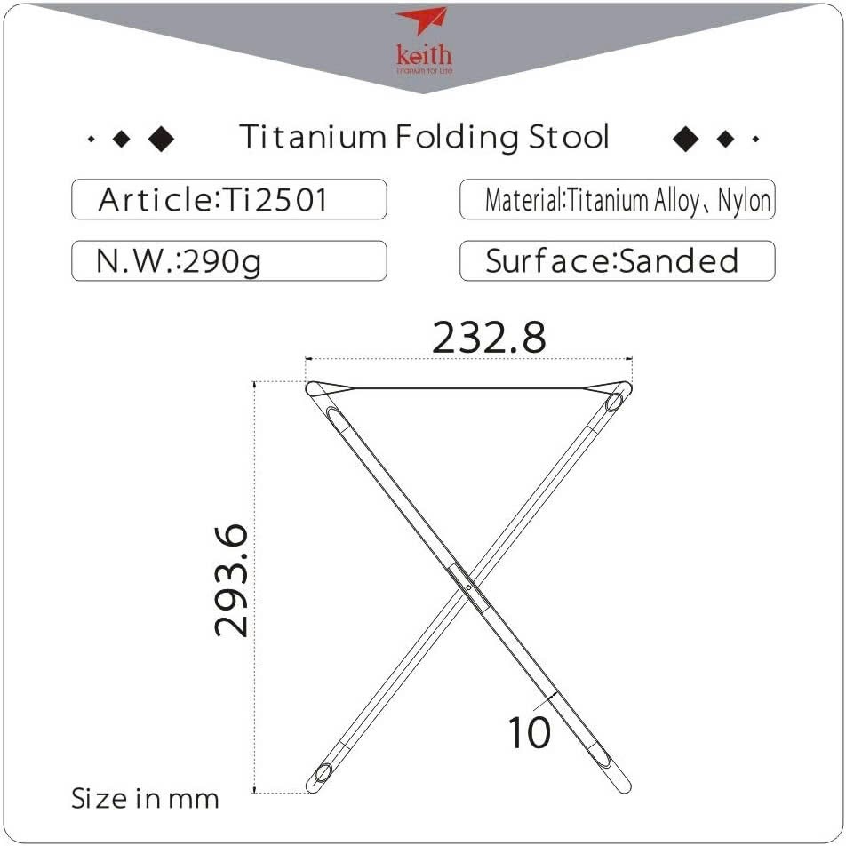 Ghế xếp Titanium Folding Stool Keith Ti2501, khung đỡ được làm từ hợp kim titan cường độ cao, nhẹ, mỏng và chắc chắn, kích thước nhỏ gọn nhưng độ bền cao, chống ăn mòn và không dễ bị gỉ.
