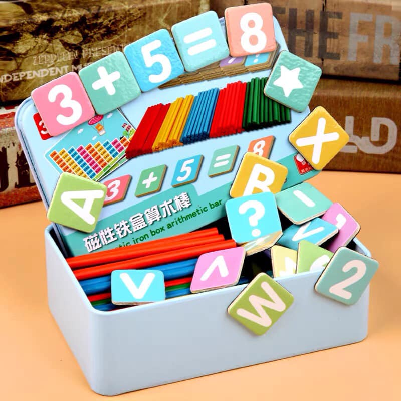 Bộ Ghép Số Và Que Tính Kèm Dấu Bằng Gỗ Giúp Bé Học Toán Hộp Thiếc 🧩 Sản phẩm gồm nhiều que tính làm bằng gỗ với nhiều màu sắc khác nhau và nhiều miếng gỗ vuông được in các con số và phép tính giúp bé trổ tài làm phép toán đơn giản của mình. 🧩 Bộ Ghép Số Và Que Tính Kèm Dấu Bằng Gỗ Giúp Bé Học Toán được làm bằng gỗ tự nhiên, tuyệt đối an toàn cho bé 🧩 Sản phẩm thiết kế có khay đựng nên rất tiện lợi. Sau khi chơi xong con có thể cất gọn gàng vào khay luôn mẹ nhé! 🧩Kích thước: 13cm*8.5cm*4cm ⚛️Cách chơi Bộ Ghép Số Và Que Tính Kèm Dấu Bằng Gỗ Giúp Bé Học Toán Các phụ huynh có thể dạy các bé làm phép toán cộng-trừ-nhân-chia thông qua các que tính và những miếng gỗ. ⚛️Lợi ích mang lại: 📍 Giúp bé phân biệt màu sắc 📍 Rèn luyện trí thông minh thông qua việc làm phép tính 📍 Bé vừa học vừa chơi một cách hiệu quả Dành cho bé từ 3 tuổi trở lên