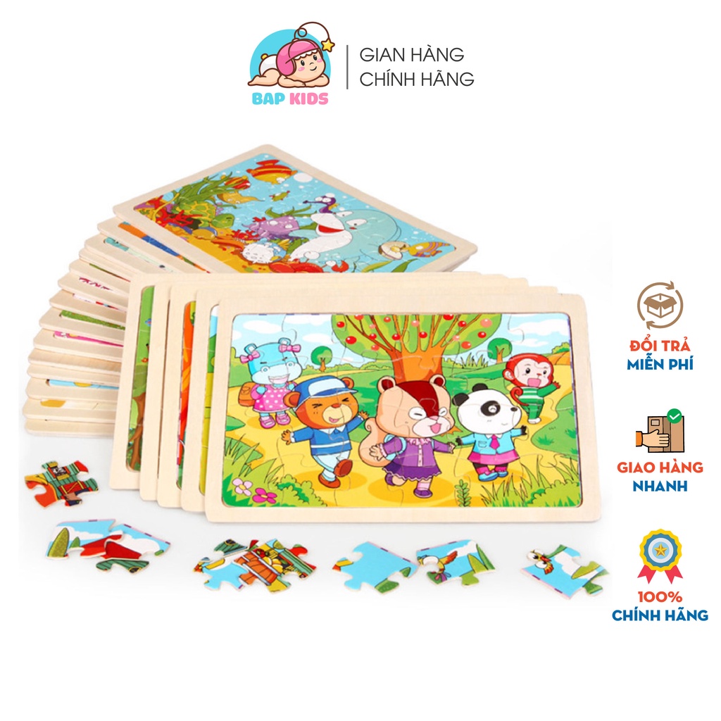 Đồ chơi ghép tranh xếp hình cho bé 24 chi tiết bằng gỗ nhiều chủ đề 15 x 22.5cm Bapkids
