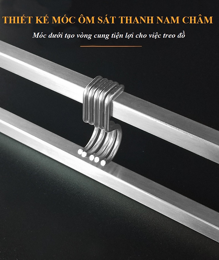 Giá dao nam châm vĩnh cửu Inox 304 DandiHome cao cấp - KÉP (có móc treo)