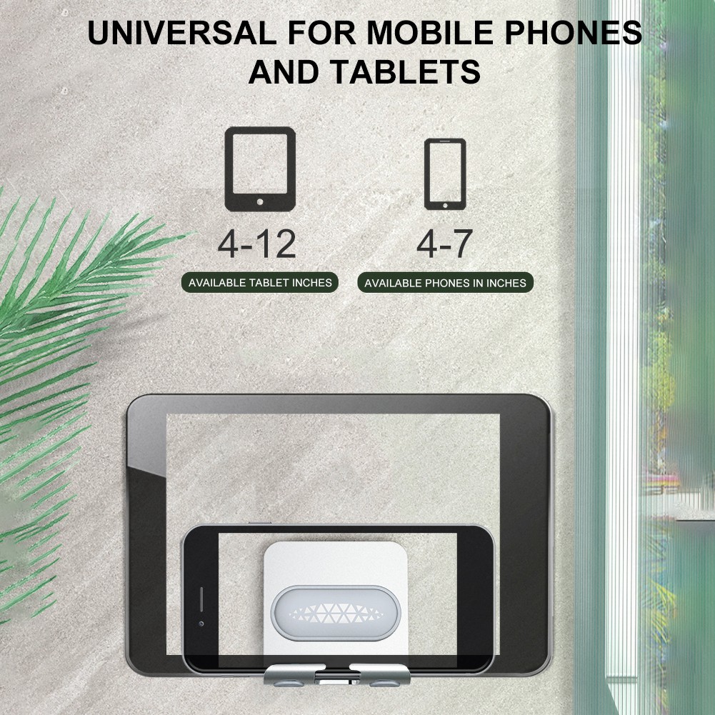 Specifications: It is suitable for mobile phones and tablets. You can install it in bathroom, kitchen, bedroom, gym or other suitable places. It can be firmly attached to the wall to ensure that your phone does not fall. The inner anti-skid pads of the bracket can effectively fix the mobile phone and protect the it from scratching.
