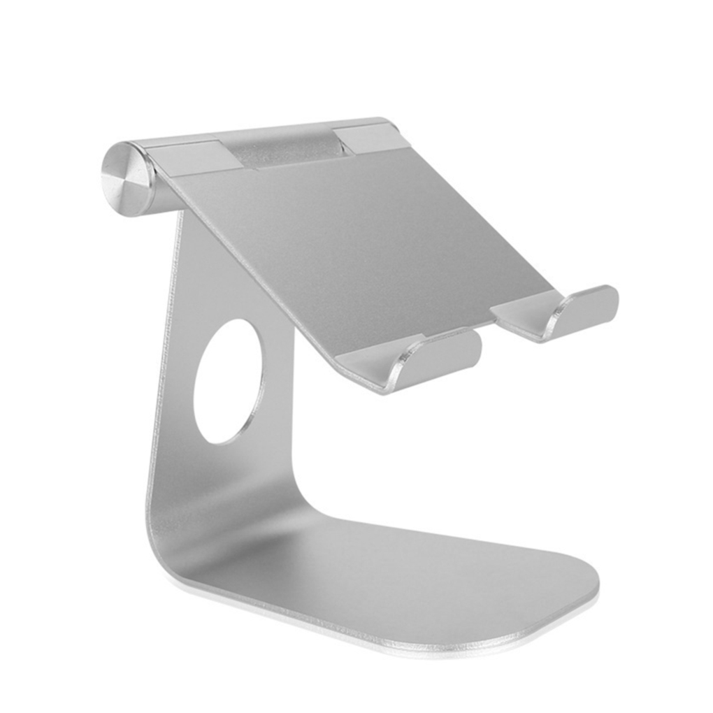 Description:This foldable phone table stand can free your hands during video watching, can hold a phone or a tablet.This phone table stand is 210-degree adjustable, let you can watch the phone screen at a proper viewing angle.This adjustable phone stand features 4 non-slip pads to prevent the phone from falling and also can protect the phone from scratching.This tablet stand is stable is a good choice to use at home, office, hotel, and more.This tablet stand adopts superior aluminum alloy material and is abrasion-resistant, durable and long-lasting, not easy to break.