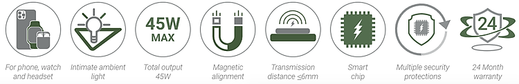 *Lưu ý: Đế sạc phù hợp với các thiết bị có hỗ trợ sạc không dây, riêng chức năng sạc mag.safe chỉ hỗ trợ cho các dòng từ i.phone 12 series trở lên và các dòng tai nghe có hỗ trợ sạc mag.safe. Lực hút từ tính chỉ hỗ trợ tốt khi sử dụng ốp lưng có độ dày <=5mm