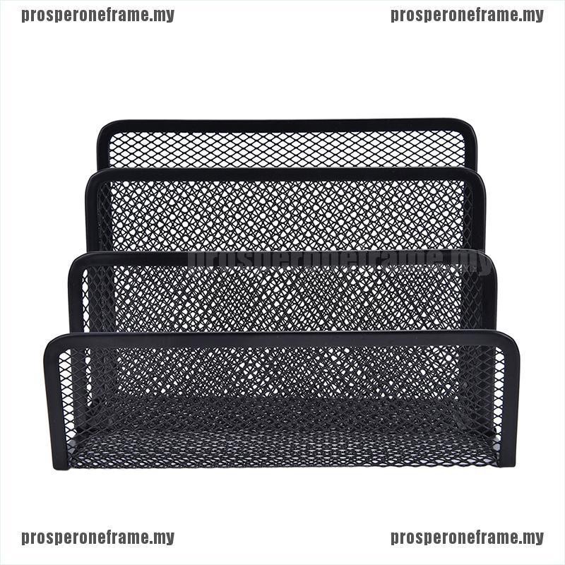 [prosperoneframe]Black Mesh Letter Paper File Storage Rack Holder TrayPerfect for your office, would look very nice in your desk. Made of metal, relatively strong and durable to use. Help put and classify the file, note books, cards etc. Three sections, anti-slip pad on the bottom. Three seats, environmental protection spray, anti-slip pad on the bottom. Specification: 100% brand new Material: Metal Color: Black Dimension: approx 17.5x8.3x13cm (LxWxH) Package Includes: 1pc x File Holder (Holder only, other accessories are not included)