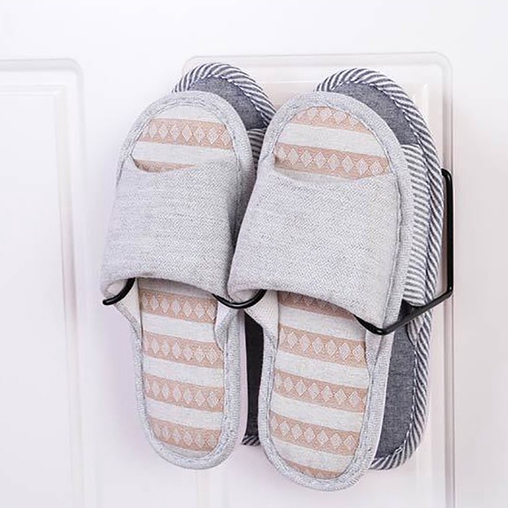 Specifications: High quality iron material, it is durable. 2 layers bracket, double card position, can accommodate 2 pairs of shoes. Stick-free paste, can be washed repeatedly, and firmly adhered. Wave shape, hanging slippers do not drop. Suitable for use in places such as toilets.