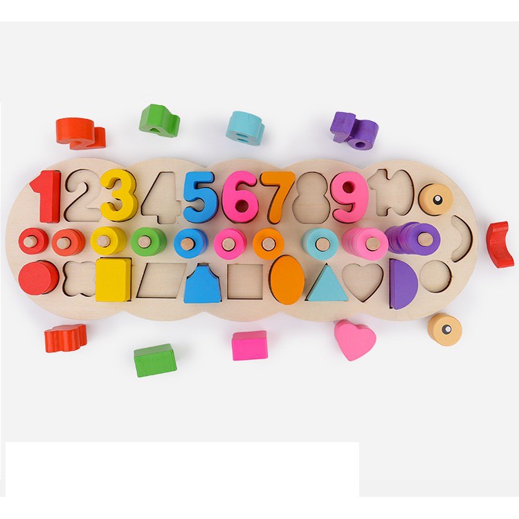 Mẹ & Bé > Đồ chơi > Đồ chơi giáo dục > Đồ chơi toán học || Bộ Giáo Cụ Montessori - Bảng Học Số Đếm, Hình Khối và Màu Sắc Hình Con Sâu