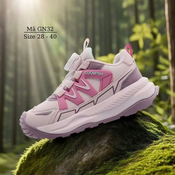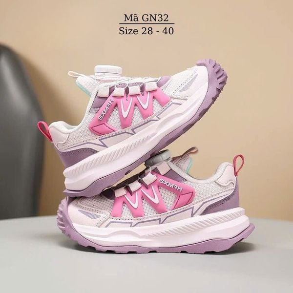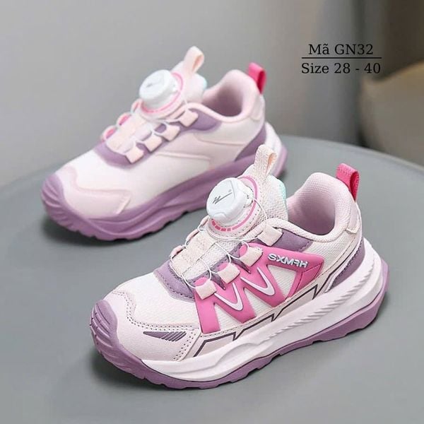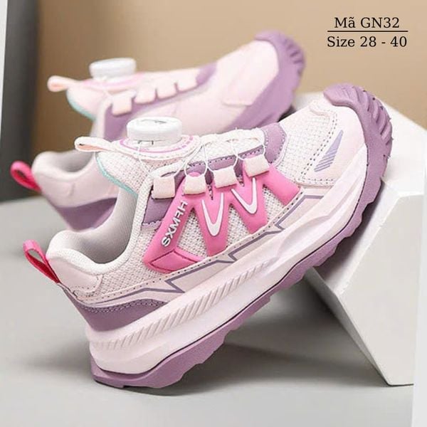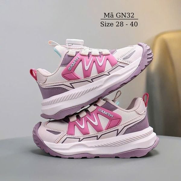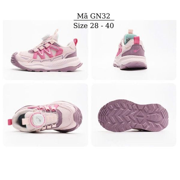 Giày thể thao bé gái WKIDS GN32 là lựa chọn hoàn hảo cho trẻ em học sinh tiểu trung học 4 - 15 tuổi, các bé năng động, yêu thích vận động và phong cách thể thao. Thiết kế màu hồng tím pastel nhẹ nhàng, hiện đại, dễ phối đồ với đồng phục hoặc trang phục thường ngày. Đôi giày bé gái đa năng này thích hợp cho bé đi học, chạy bộ, chơi bóng rổ, pickleball hay các hoạt động ngoài trời. Form giày ôm chân, hỗ trợ gót và có thể lót thêm đế chỉnh hình cho bé bàn chân bẹt, giúp bé di chuyển thoải mái, tự tin và an toàn trong từng bước đi.