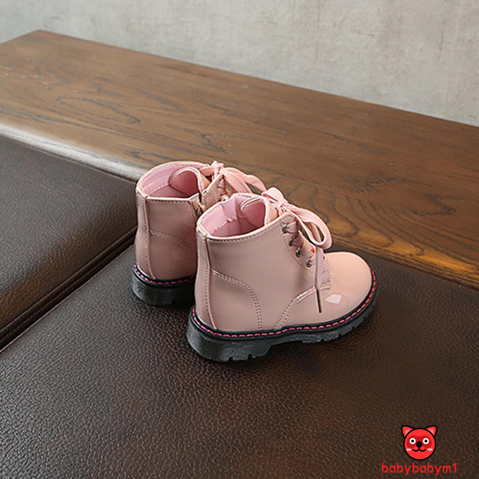 Toddler Girls Boys Martin Boots, Fashion Side Zipper Lace-Up PU Leather Non-Slip Ankle Boots
