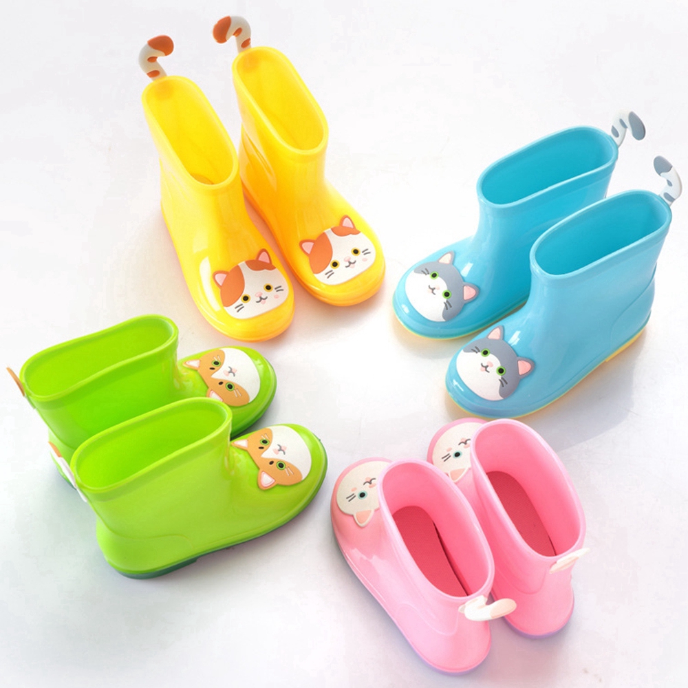 Korean Fashion Cute Cat Kids Boys Girls Rain Boots Green Pink Infant Toddler Baby Rain Boots
