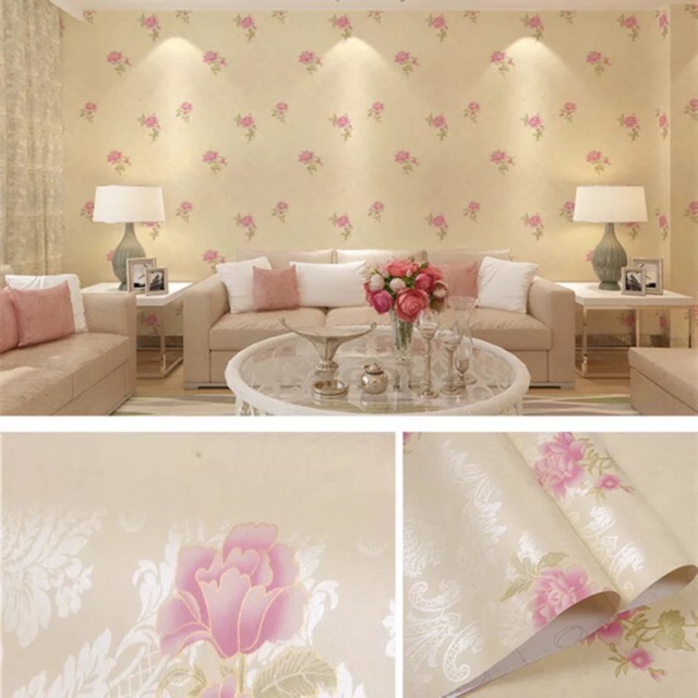 Giới thiệu Giấy dán tường hoa hồng nền vàng 10 m khổ 45 cm keo sẵn