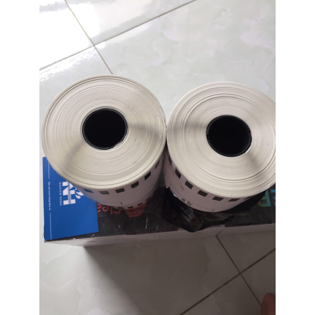 Giới thiệu Giấy in nhãn Brother DK-22205, Rộng 62mm, Dài 30.48m, chữ đen nền trắng. Dùng cho máy in nhãn Brother dòng QL