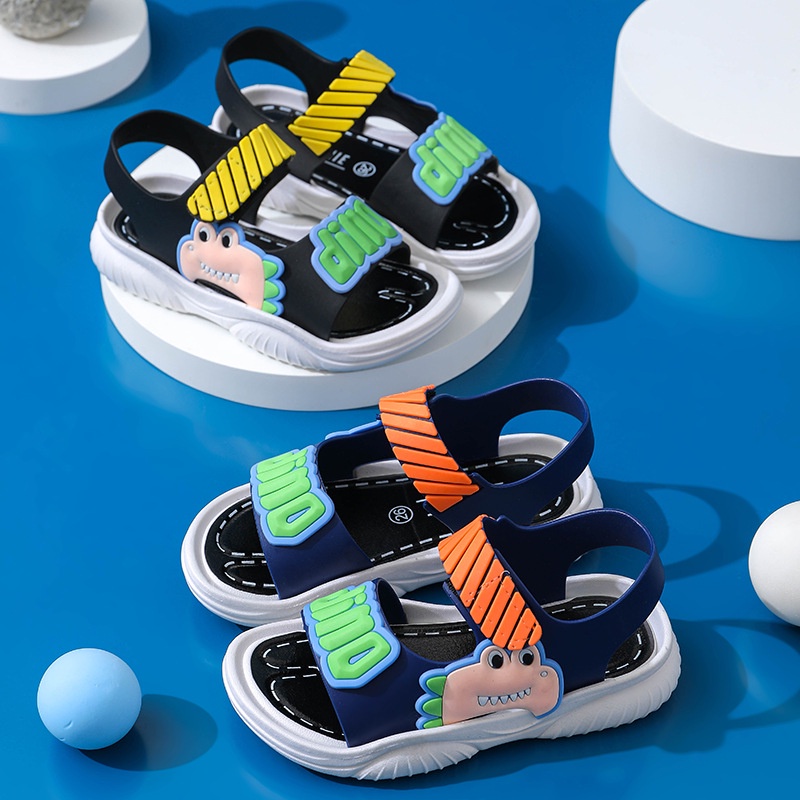 Thời trang trẻ em & trẻ sơ sinh > Giày bé trai > Dép quai hậu || Giày quai dán cho bé trai hình khủng long cao su mềm