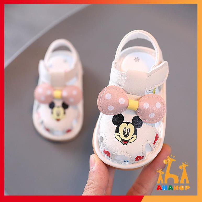 Giới thiệu Giày sandal bé gái - Sandal tập đi cho bé gái hình Mickey chất da PU đế chống trơn trượt có còi siêu mềm A1