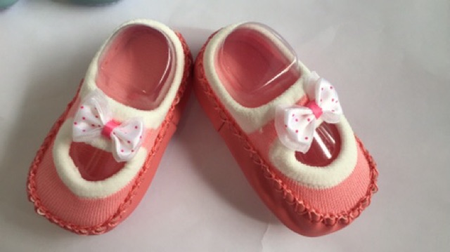 Dưới đế cấu tạo gồm 2 lớp. Lớp tiếp xúc da bé là sợi cotton đan lưới mềm mại thoáng khí. Phía dưới là lớp chống trơn đan nổi với một lớp đệm độ dày vừa phải rất êm dịu với chân bé.