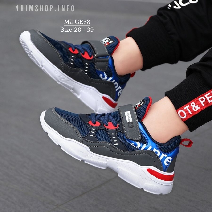 Giới thiệu Giày bé trai thể thao cao cấp đi học chạy bộ cho bé 4 - 12 tuổi siêu nhẹ, kháng khuẩn, chống trơn trượt GE88