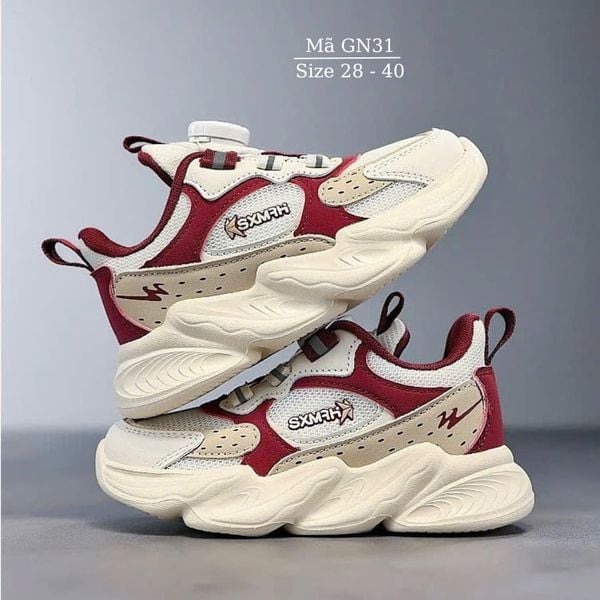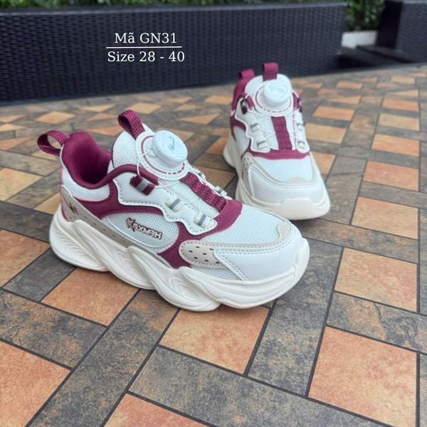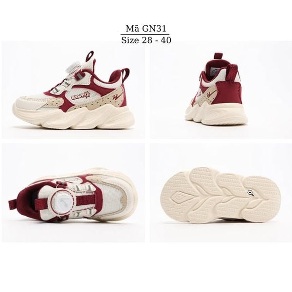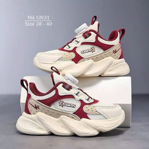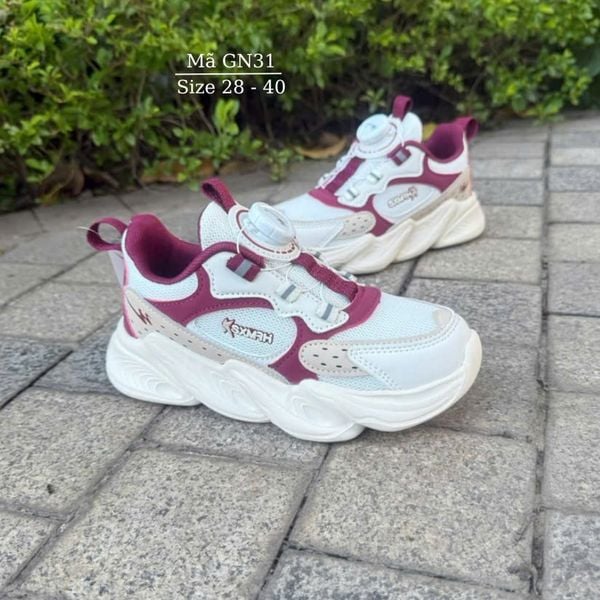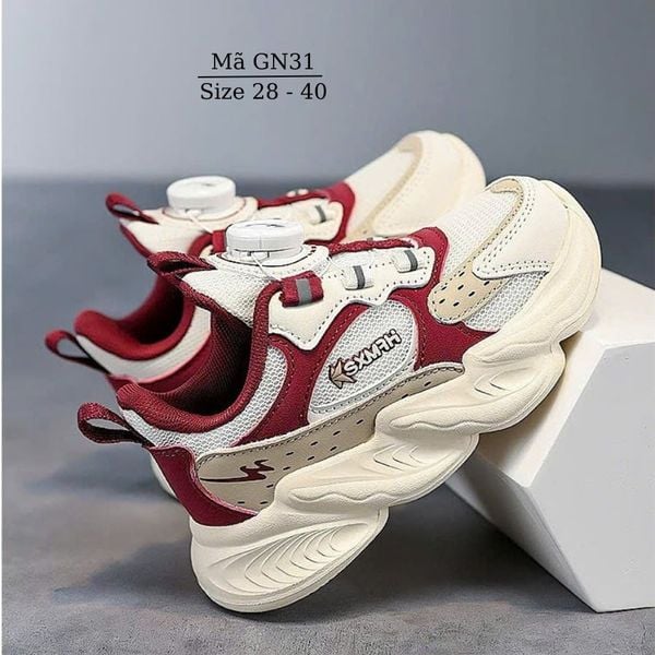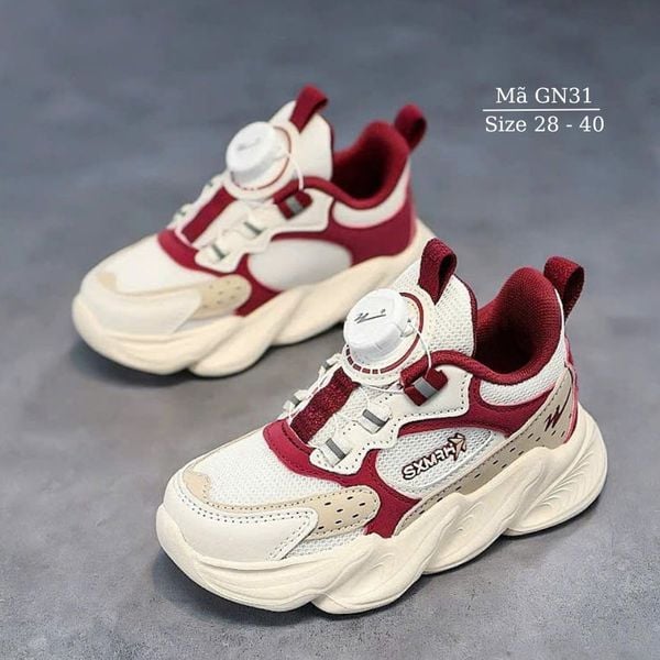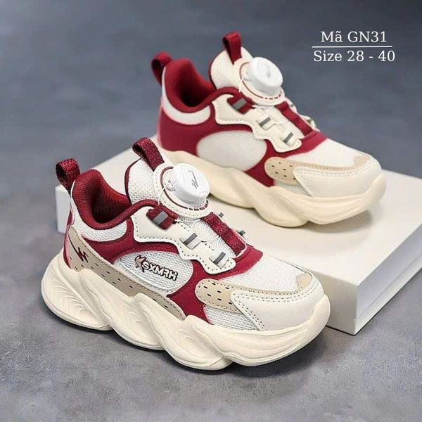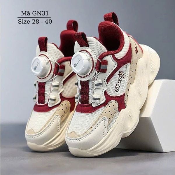Giày thể thao trẻ em W.KIDS GN31 Đỏ Kem là siêu phẩm dành cho các bé từ 4–15 tuổi yêu thích vận động và phong cách hiện đại. Mẫu giày được thiết kế với khóa xoáy thông minh thế hệ mới, không cần buộc dây, không cần quai dán, giúp bé mang vào hoặc tháo ra chỉ trong vài giây. Chỉ cần kéo và vặn núm khóa, giày tự động ôm khít toàn bộ bàn chân từ ngón đến gót, chắc chắn và an toàn ngay cả khi bé chạy nhảy, chơi bóng rổ, cầu lông, đạp xe hay tập Pickleball. Sự kết hợp hoàn hảo giữa giày lười và giày thể thao cao cấp giúp GN31 vừa tiện lợi như slip-on, vừa ôm sát nâng đỡ bàn chân như giày buộc dây truyền thống. Chất liệu cao cấp siêu nhẹ, đế đàn hồi bám tốt, êm ái khi di chuyển giúp bé thoải mái cả ngày dài dù đi học hay vui chơi. Dòng size đa dạng từ 28–40, phù hợp cho trẻ em mầm non, mẫu giáo, học sinh cấp 1 và học sinh cấp 2. Thiết kế màu Đỏ Kem năng động, dễ phối đồ, giúp bé nổi bật mọi lúc mọi nơi – từ sân chơi, lớp học cho đến các hoạt động thể dục thể thao ngoài trời.