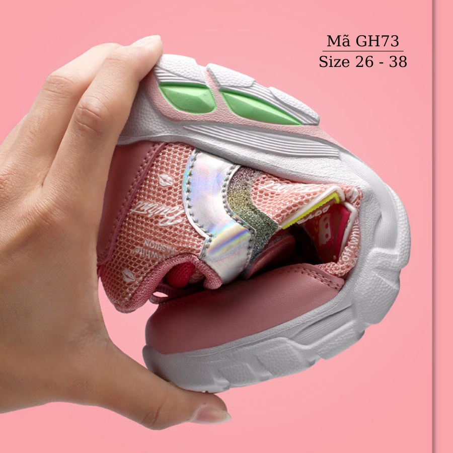 Dòng sản phẩm giày thể thao bé gái siêu nhẹ GH73 với thiết kế đẹp, kiểu dáng thời trang, phong cách vintage basic sẽ là lựa chọn tuyệt vời cho các bé gái đang tìm một đôi giày thể thao đi học, giày thể thao chạy bộ, tập thể dục hoặc mang đi dã ngoại du lịch các mùa: xuân, hè, thu, đông...