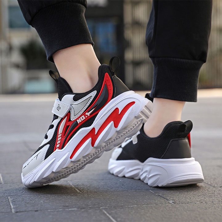 Giới thiệu Giày thể thao cho bé trai từ 4 - 15 tuổi màu đen đỏ cá tính PD01