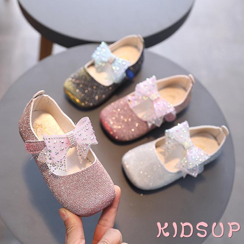 Giới thiệu Giày Thể Thao Da Đế Mềm Thắt Nơ Đính Kim Sa Lấp Lánh Màu Vàng / Bạc / Hồng Cho Bé Gái