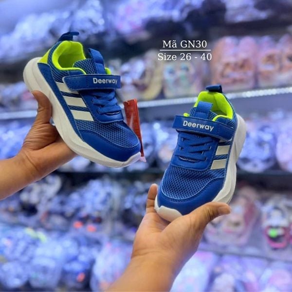 Giày thể thao trẻ em Deerway GN30 là dòng giày trẻ em học sinh được thiết kế dành riêng cho bé trai và bé gái yêu thích vận động. Với kiểu dáng năng động, màu xanh dương phối trắng và vàng neon nổi bậ...
