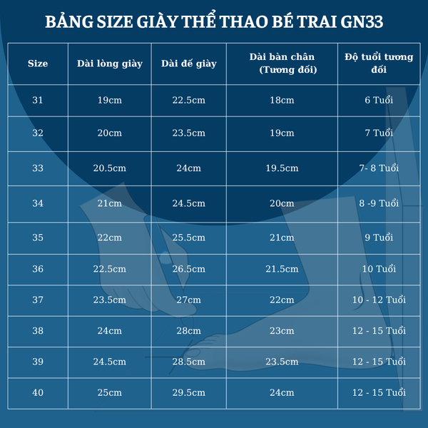 Giới tính: bé trai/ bé gái/ học sinh nam nữ cấp 1, cấp 2 (giày học sinh tiểu trung học)