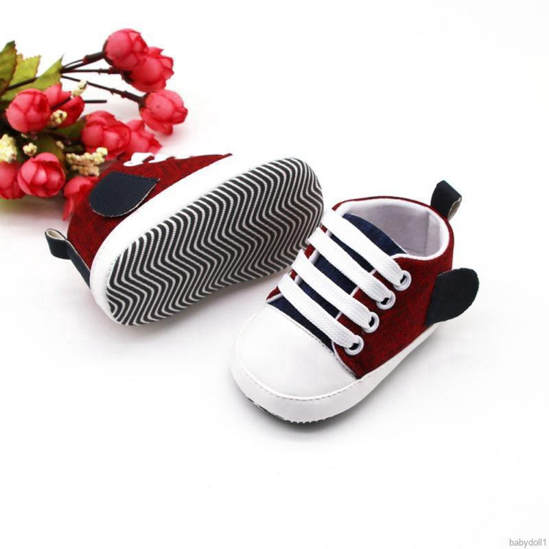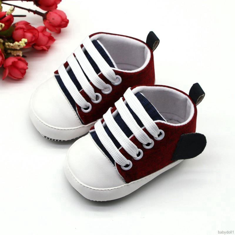 Feature: Shoe upper material: Canvas, Sole Material: Cotton Fabric Suitable for baby from 0-18 months old,4 colors for choice Lovely and charming design available, make your baby look more attractive Soft, lightweight, and anti-slip sole is well-crafted to make walking feel natural and comfortable A Lace-up Closure makes our canvas shoes easy to put on, take off, and most importantly, stay on your Baby 's feet! Classic style suit any occasion, indoor, outdoor, party, etc. Please Refer to the Size Chart in product description before purchase