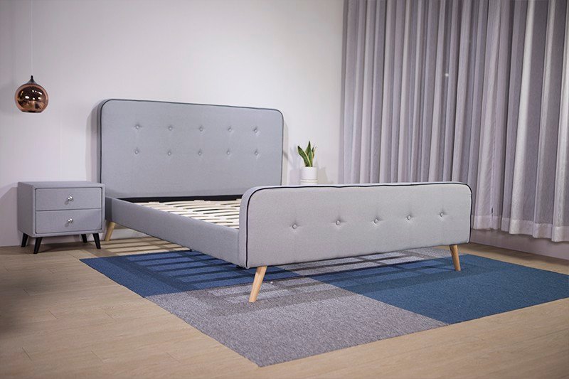 Giường bọc vải Scandinavian phiên bản màu xám là mẫu giường được ưa chuộng khi đặt vào các không gian mang phong cách Bắc Âu Scandinavian.