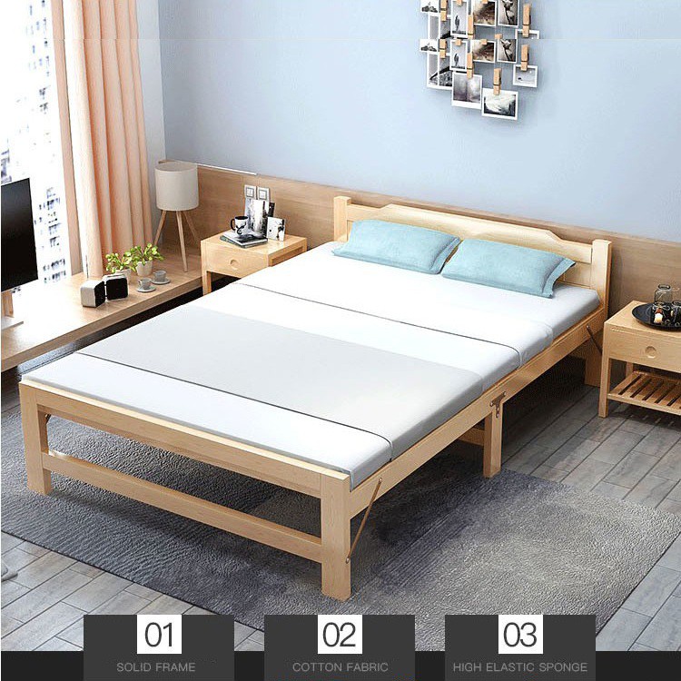 Giới thiệu Giường gỗ thông gấp gọn 1m2 tặng kèm đệm lót