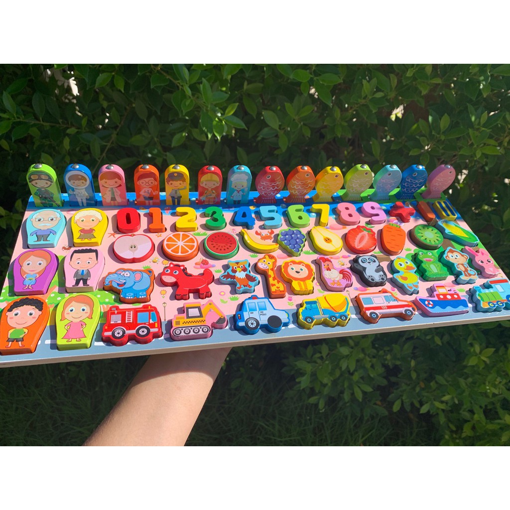 [Mã TOYDEC giảm 10% tối đa 15K đơn từ 50K] Đồ chơi gỗ thông minh 5 trong 1 cho Bé (Đồ Chơi Trẻ Em) 1: Các chữ cái giúp bé làm quen mặt chữ, số, hình. 2. Các số giúp bé làm toán phân biệt màu sắc. 3: Hình học giúp bé nhận dạng ghép hình. 4: Các vòng nhựa giúp bé làm tính rèn tư duy. 5: Câu cá cho bé giải trí tăng cường sự khéo léo.