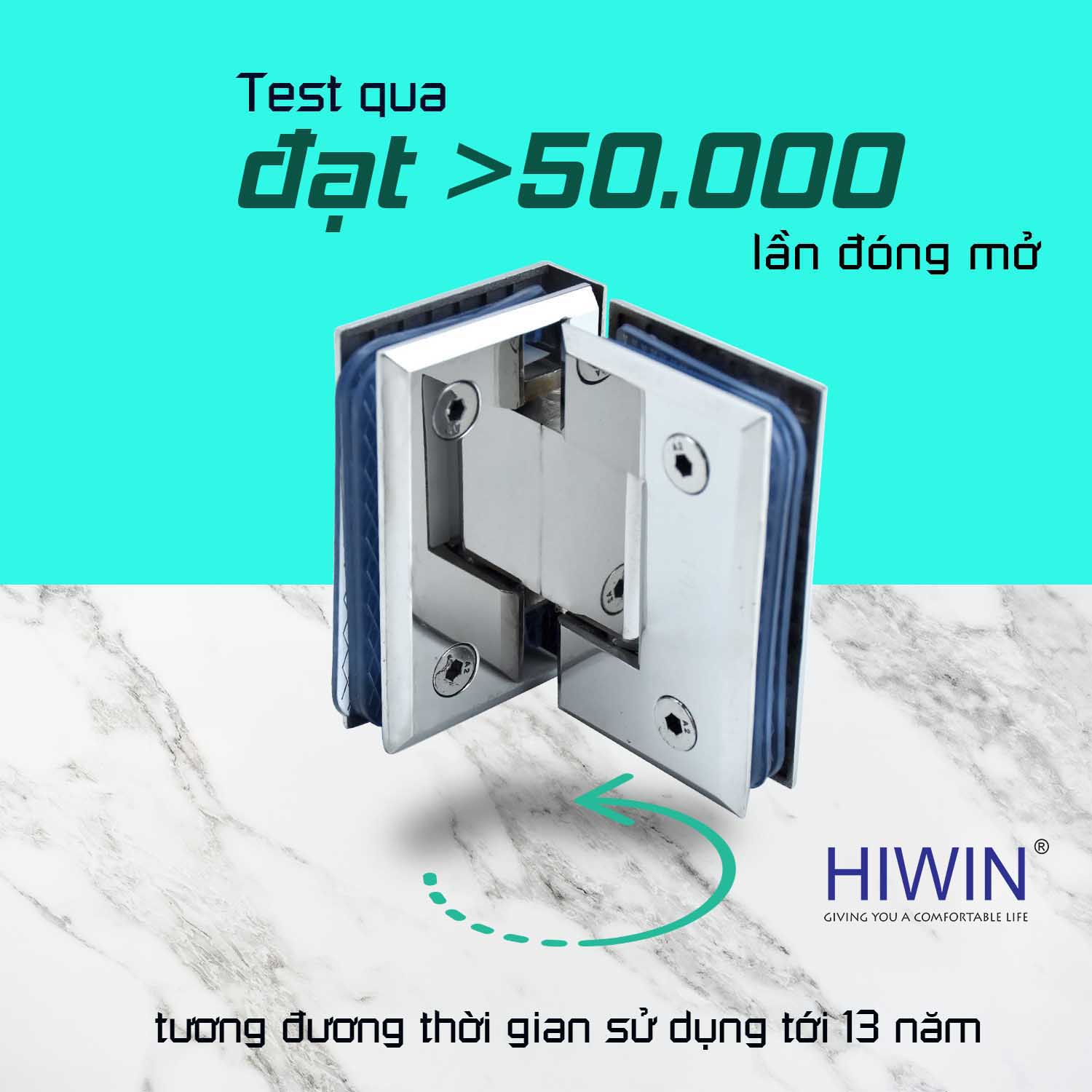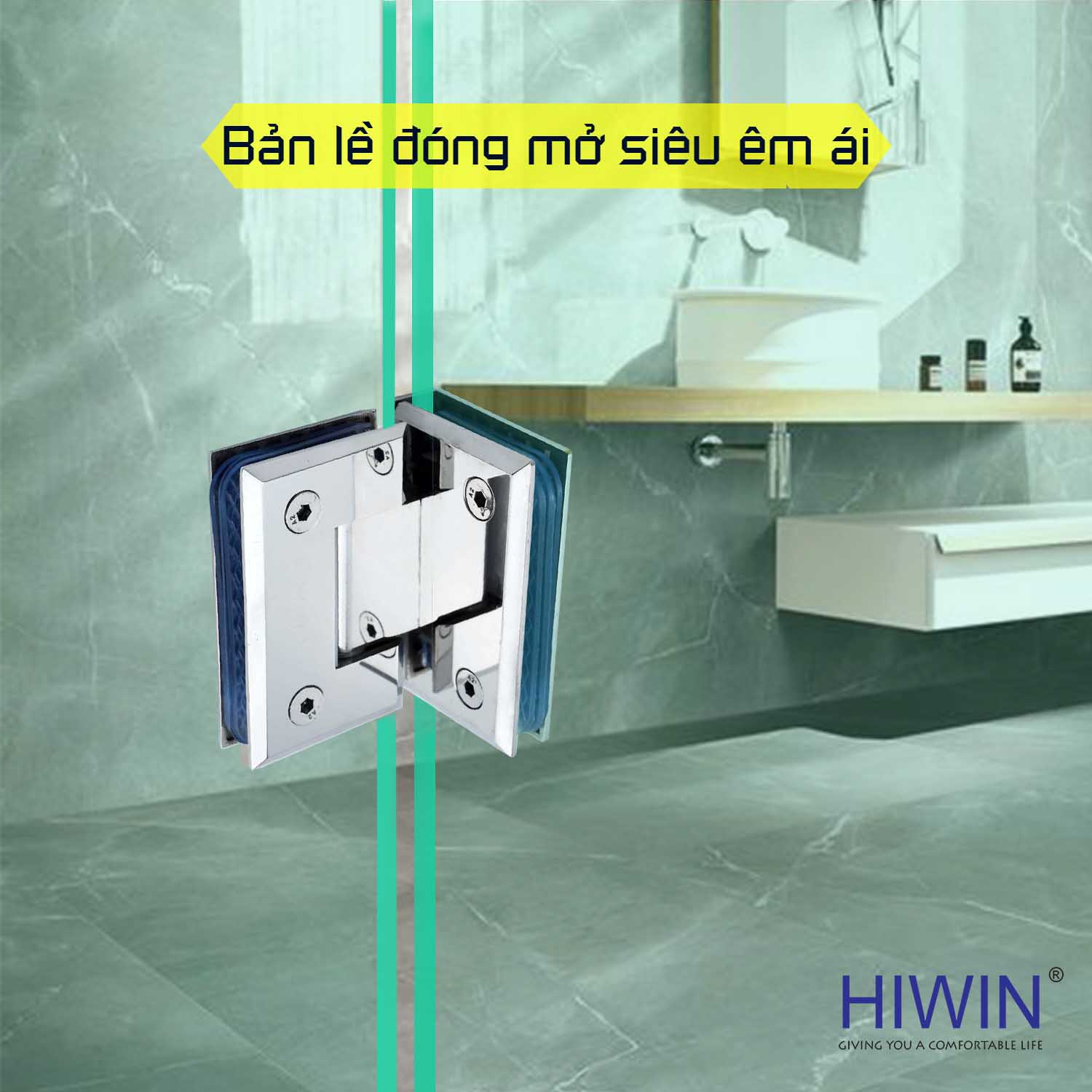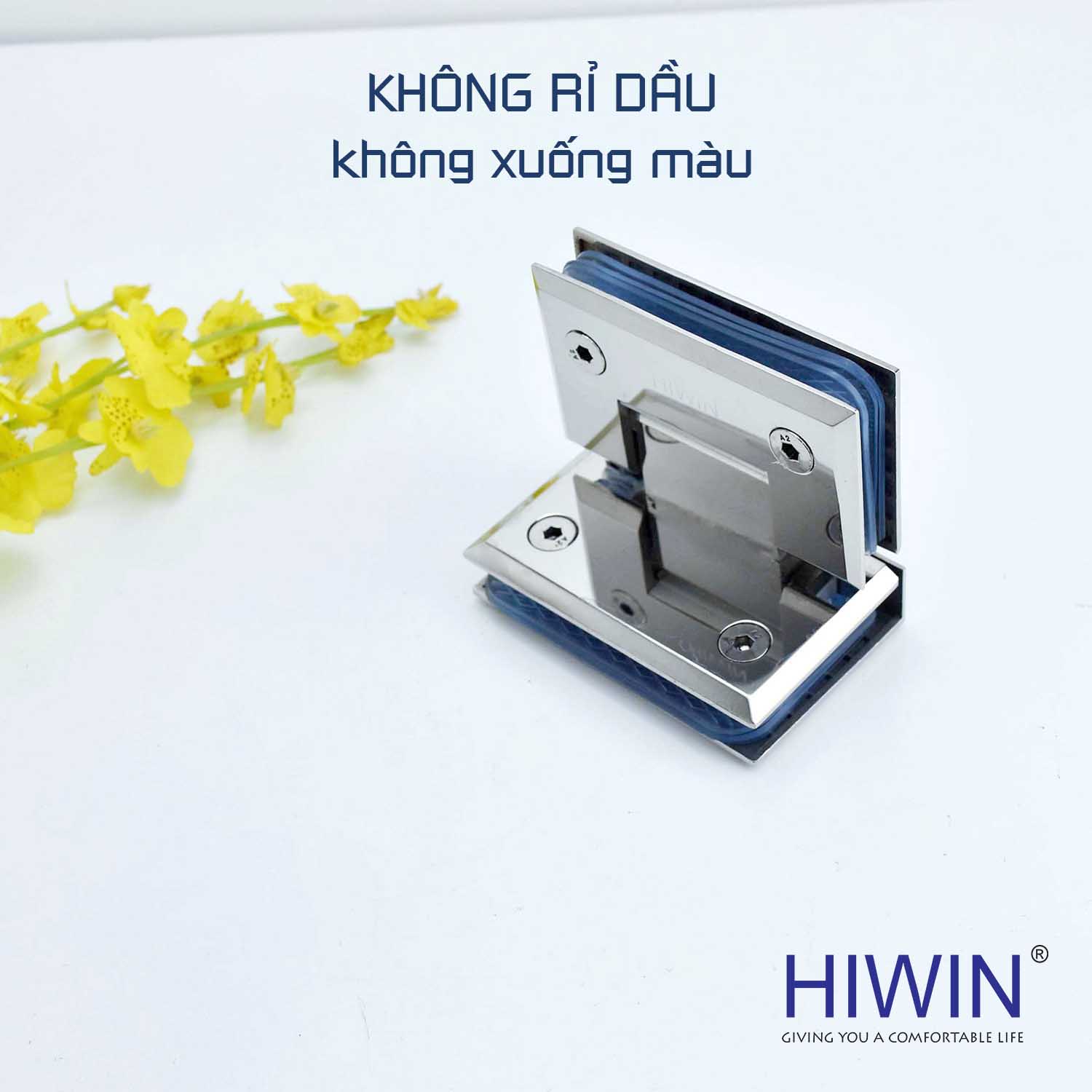 Tên gọi: Bản lề phòng tắm kính 90 độ cạnh vát mặt gương inox 304 Hiwin HG-011 (dày 5 mm)