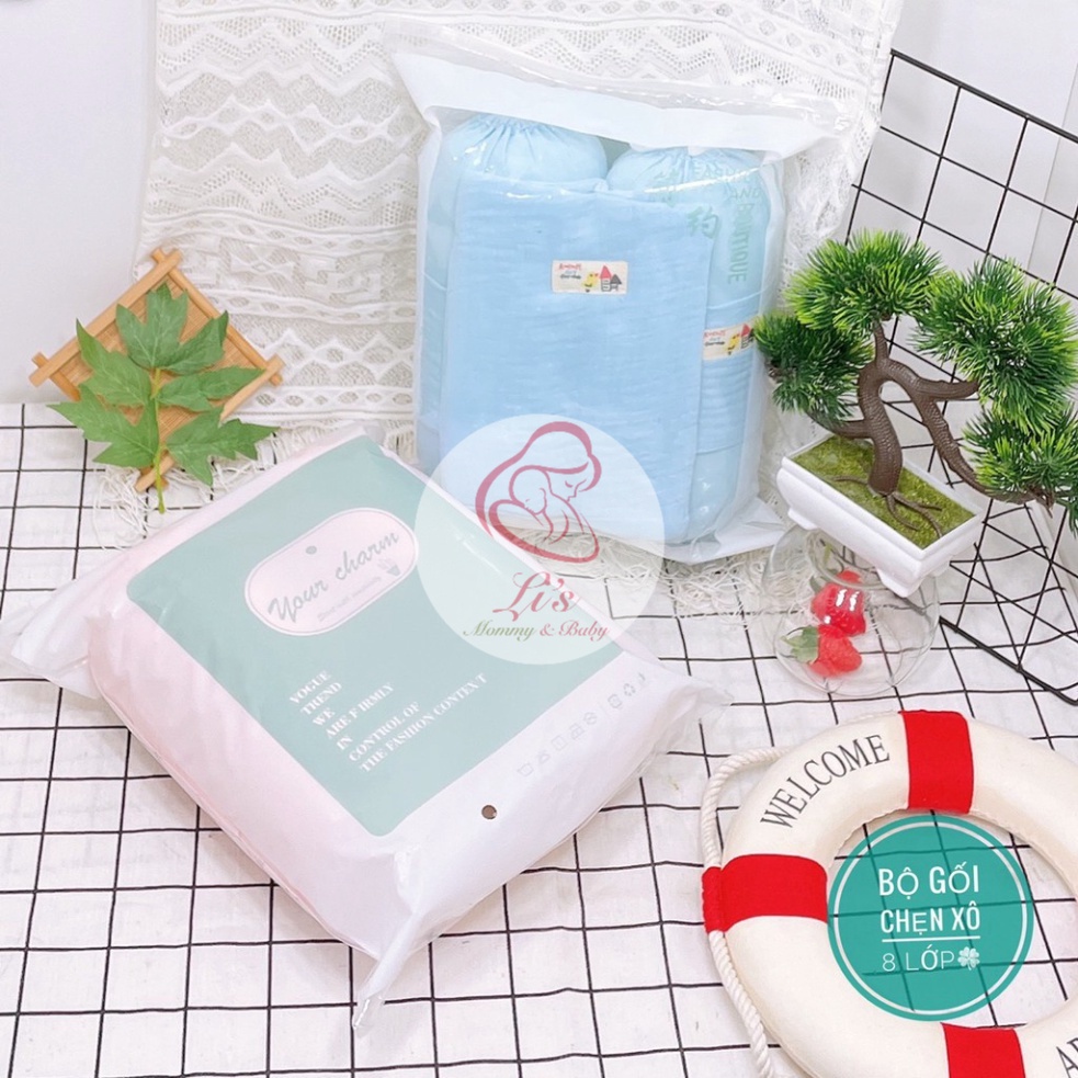Gối chặn cho bé chống giật mình giúp bé sơ sinh ngủ ngon vải xô sợi tre 8 lớp kèm gối hoạ tiết Mã GC60