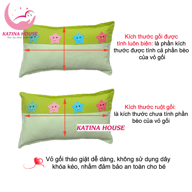 Size 27x42cm: độ phồng gối 6-7cm, phù hợp bé 8thang -3 tuổi