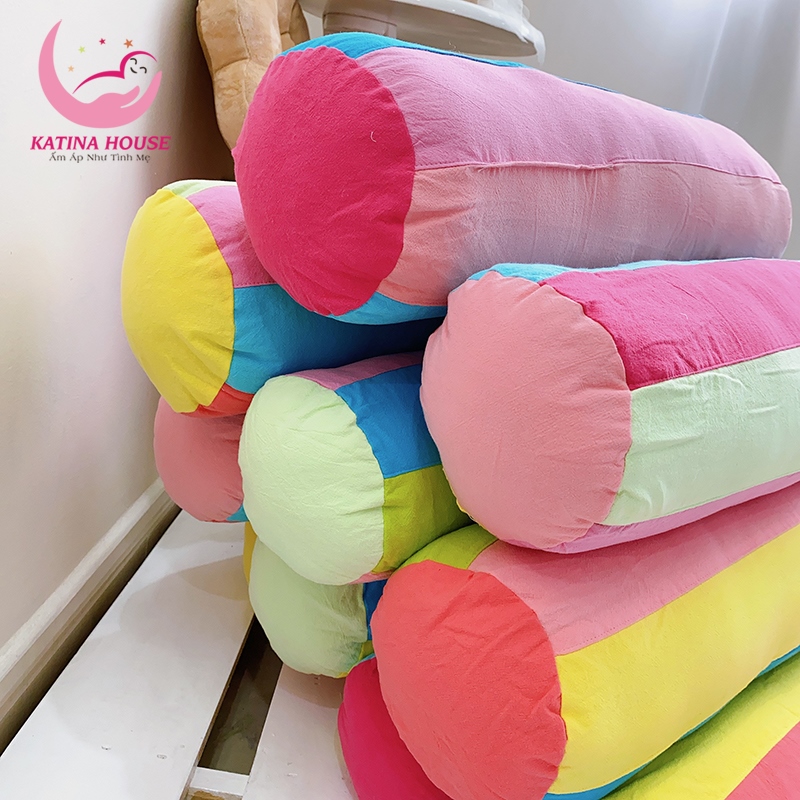 Gối được thiết kế phối nhiều màu sắc sặc sỡ, giúp thu hút các bé hơn, gối trông dễ thương và xinh xắn.