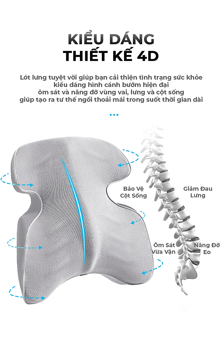 Công dụng của Gối Tựa Đầu Lót Lưng Cao Su Non Định Hình 4D Chống Đau Mỏi Vai Gáy Cột Sống CIND TK-028