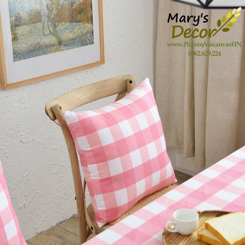 Giới thiệu Gối tựa sofa Mary Décor - họa tiết Caro hồng trắng to