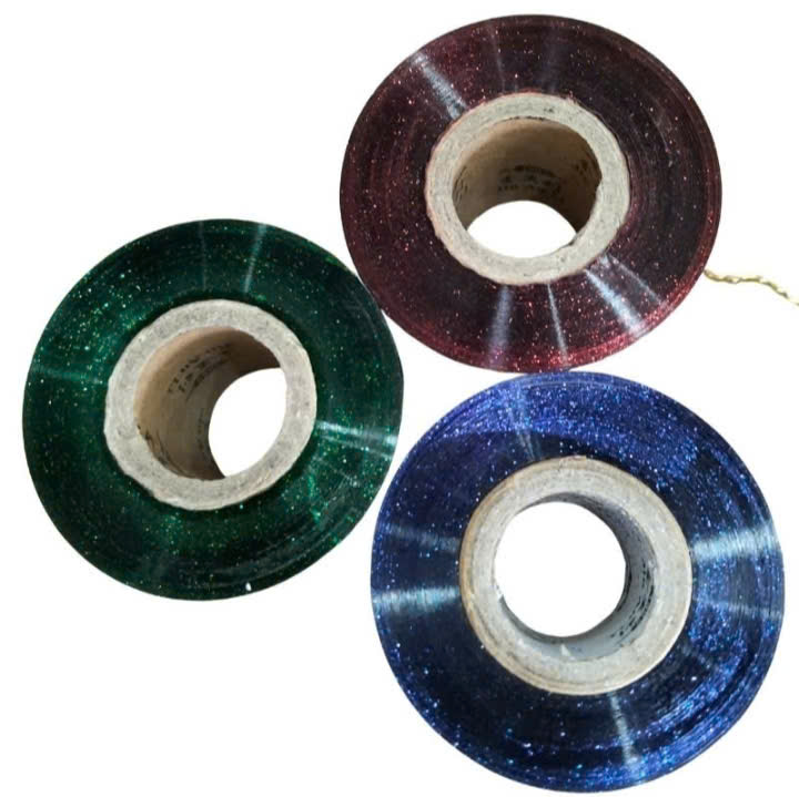 Cuộn vàng kích thước rộng 4cm dài 120m, lớp lót bằng nilon.