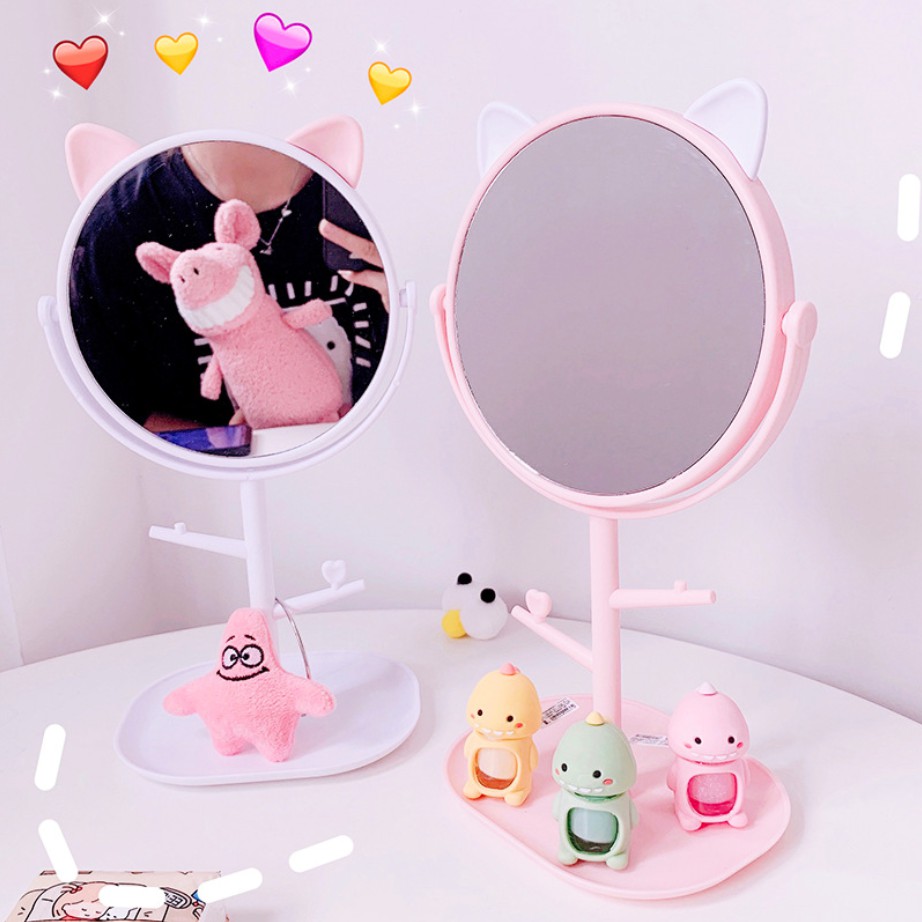 Giới thiệu Gương để bàn trang điểm tai mèo gương soi Hàn Quốc dạng xoay 360 độ