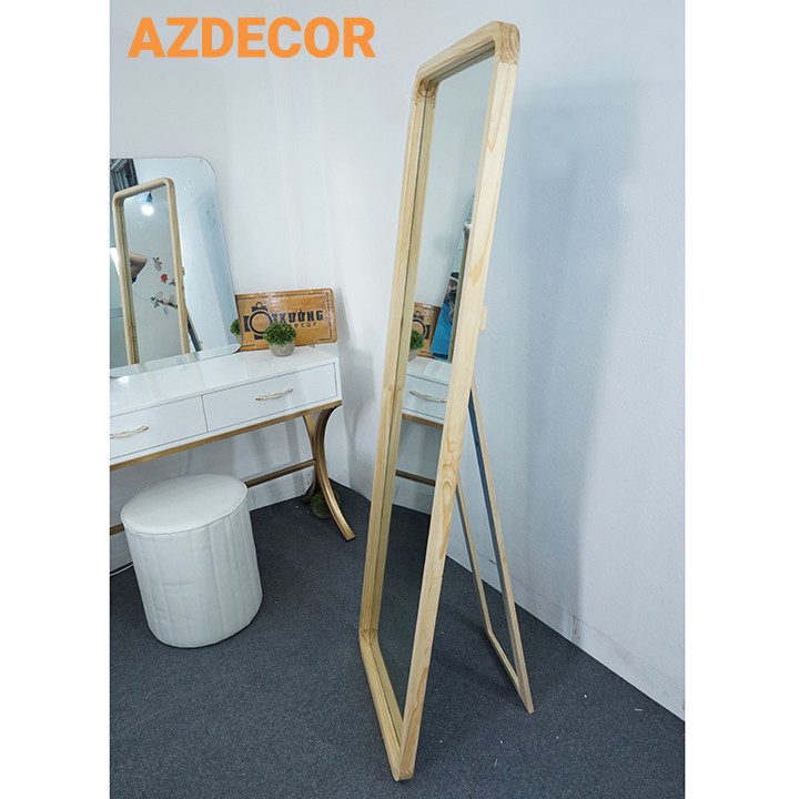 Gương toàn thân viền gỗ thông, gương đứng trang trí nhà cửa