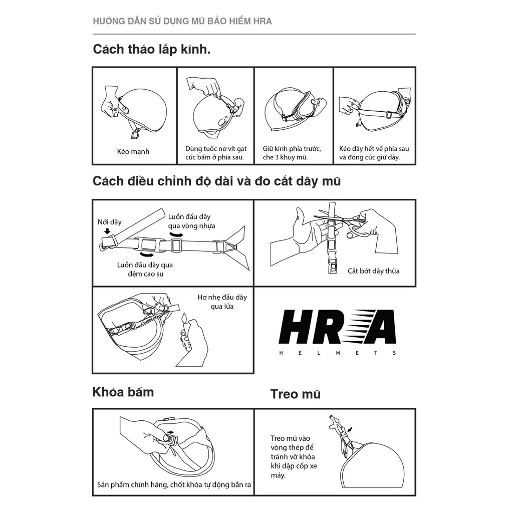 🔹 SẢN PHẨM TẶNG KÈM KÍNH HR1 HOẶC KÍNH UV 400 🔹 🔹 Kiểu dáng: Mũ bảo hiểm 1/2 đầu (Haly). 🔹 Nguyên liệu: Nhựa ABS nguyên sinh, xốp EPS nguyên sinh 100%. 🔹 Khóa bấm: Mẫu khóa độc quyền siêu bền, không gỉ. 🔹 Nước sơn: sơn cao cấp chống phai màu, màu sắc rất đẹp. 🔹 Nhãn hiệu: HRA (nhãn hàng liên doanh cùng ZEUS – nhà sản xuất MBH hàng đầu châu Á). 🔹 Đạt tiêu chuẩn an toàn QCVN 2 : 2008/BKHCN. 🔹 Mũ với 2 lựa chọn lót trong: + Smart (Có thể tháo giặt vệ sinh, kháng khuẩn) + Basic (dạng lưới thoáng, kháng khuẩn). 🔹 Phụ kiện đi kèm: lưỡi chai. 🔹BẢO HÀNH: 12 THÁNG LƯU Ý: Mũ gốc đi kèm 1 lưỡi chai chưa bao gồm kính, có thể lựa chọn thêm kính theo các option bên dưới. Trường hợp nếu bạn muốn chọn loại kính khác không có trong gợi ý vui lòng chọn “Không kính” sau đó “thêm vào giỏ hàng”. _________________________________________ 🔹 Store: Số 37 Ngõ 36, Đào Tấn, Ba Đình, Hà Nội 🌐 www.mubaohiemdochanoi.com 🔸 Đặt hàng shopee: https://bit.ly/35MGbUT 🔸 Instagram: mubaohiemdochanoi 🔸 Youtube: https://bit.ly/3peo1Ep 📌 Chính sách bảo hành: https://bit.ly/32qGVOw ☎️ Hotline: 024.632.818.10