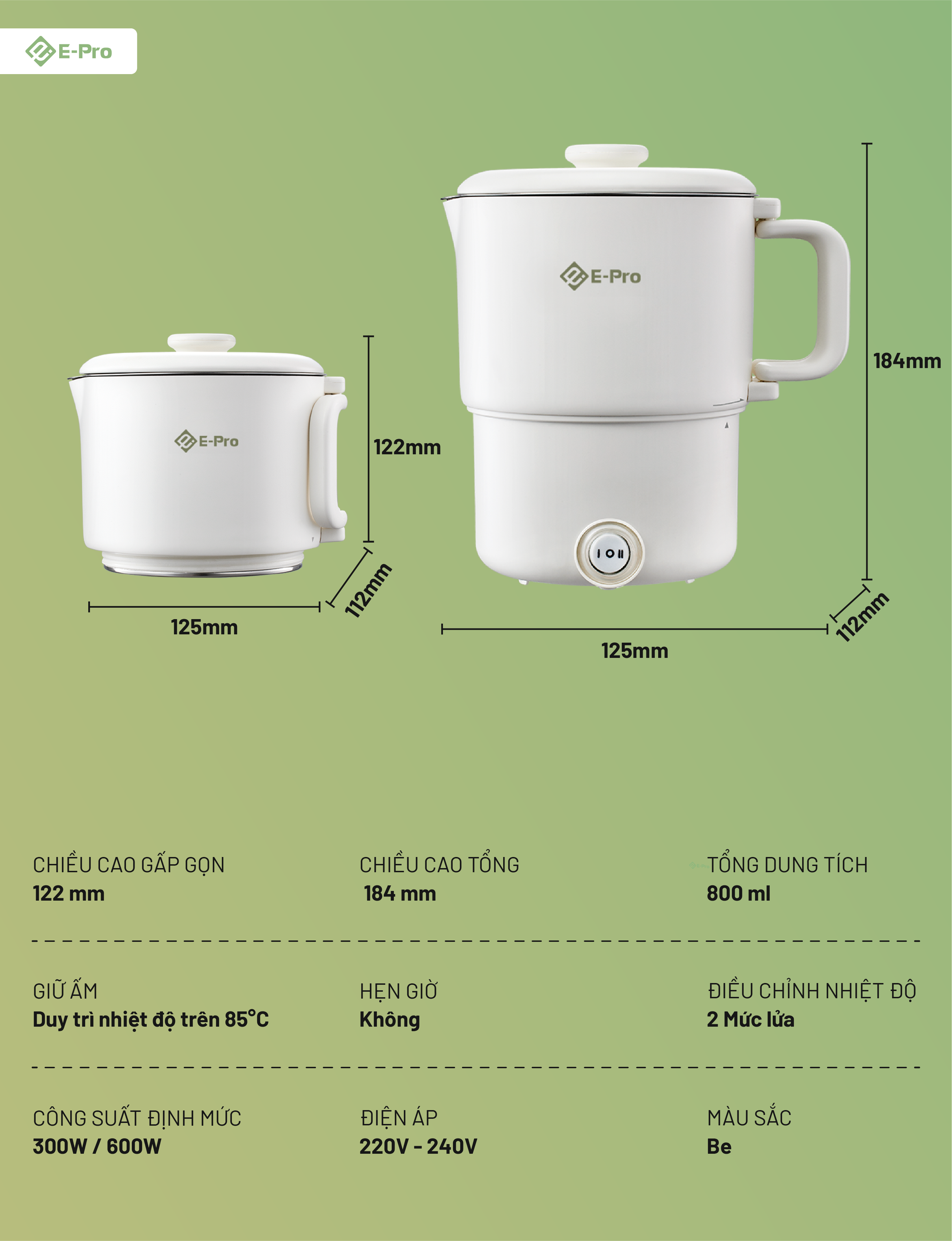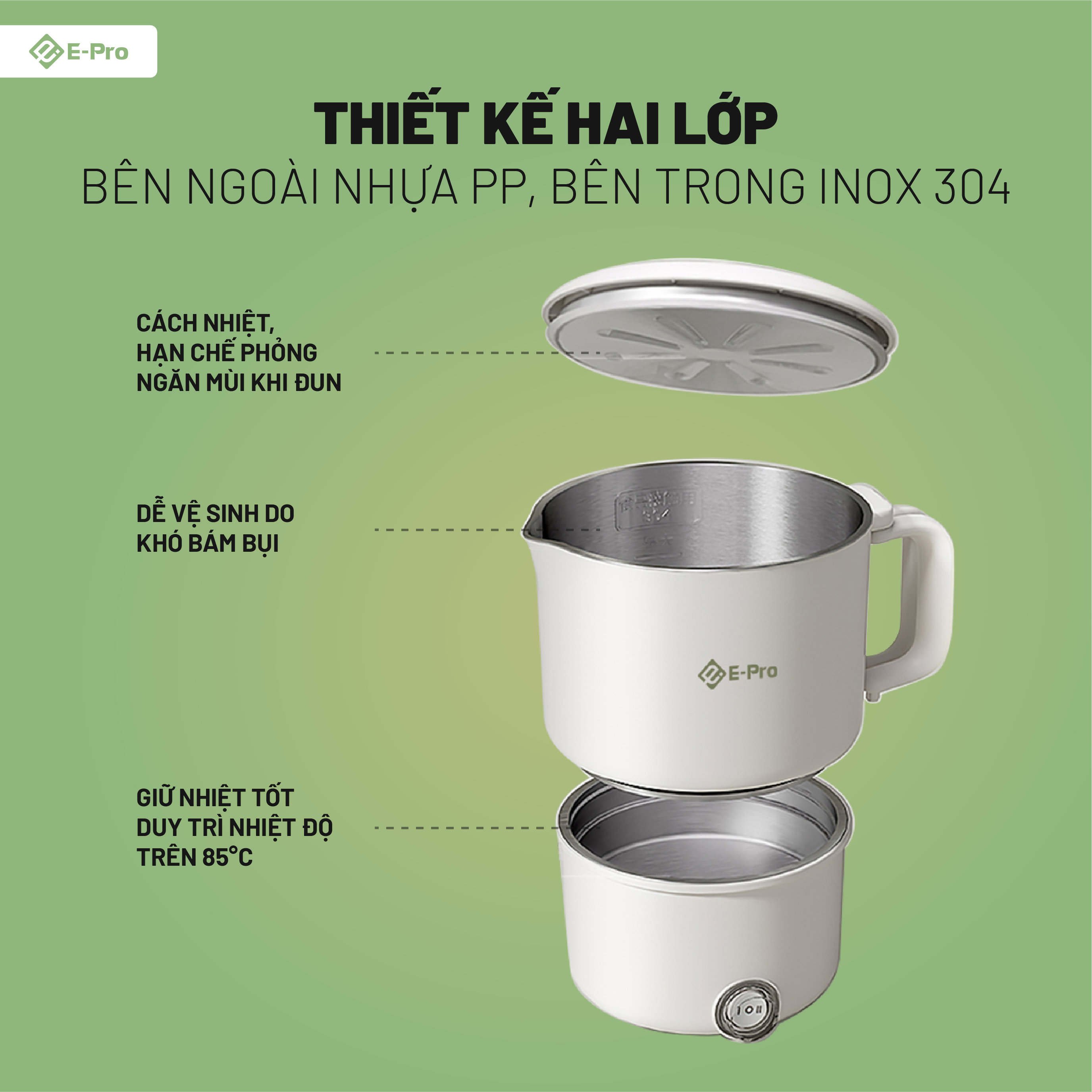 ![[Hàng chính hãng] Bình đun điện E-pro - Đun sôi và giữ ấm - 800ml - 600W](https://websosanh.co/img/no-pro.jpg)