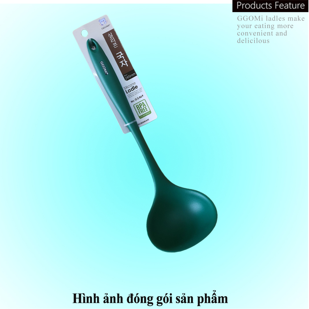 Bộ dụng cụ nấu ăn bằng silicone GGOMi Hàn Quốc bao gồm: 01 Muôi/Muỗng múc canh, 01 Muôi/Muỗng thủng múc đồ ăn, 01 Vá sạn/Xẻng đảo lật thức ăn