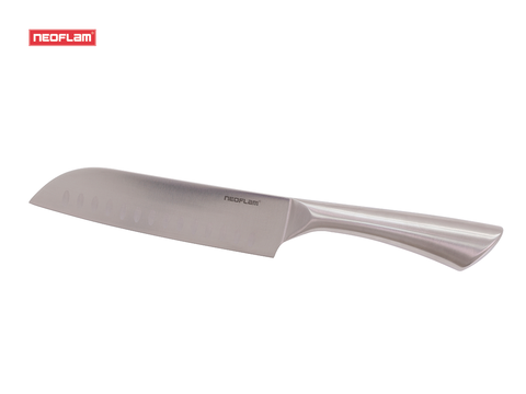 Dao Santoku cỡ nhỏ Neoflam: dài 25cm (cán), độ dày dao 2.5 mm. Dùng đa năng với các tác vụ cắt, thái, gọt