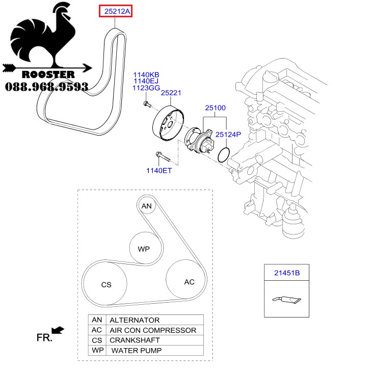 Ô tô - xe máy - xe đạp > Chăm sóc ô tô > Phụ tùng, linh kiện thay thế || [Hàng chính hãng] Dây đai tổng, Dây Curoa I10 Grand (Kappa 1.2, 14-20, dây không tăng tăng) (Mã: 2521203050 - 5PK1230)