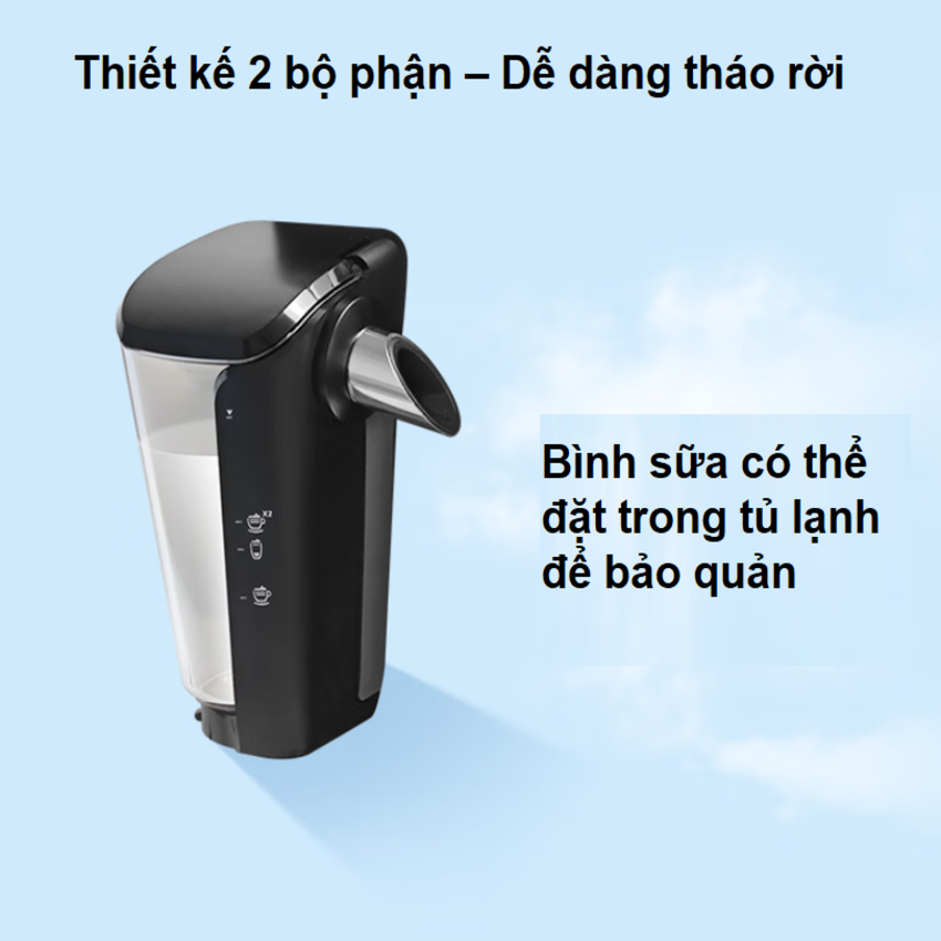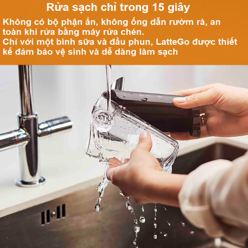 - Hệ thống sữa chỉ gồm 2 bộ phận, không có ống dẫn, nên có thể rửa dưới vòi nước hoặc bằng máy rửa chén và làm sạch trong khoảng 10 giây.