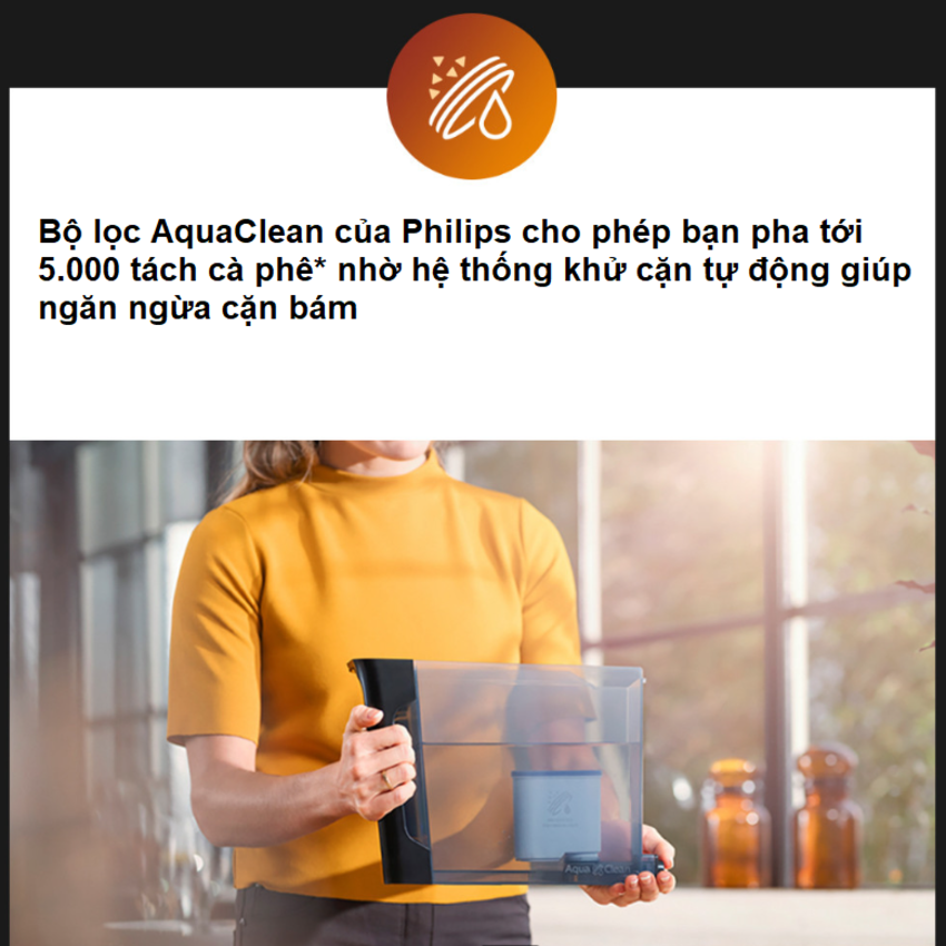 - Công nghệ AquaClean giúp pha đến 5000 ly mà không cần tẩy cặn