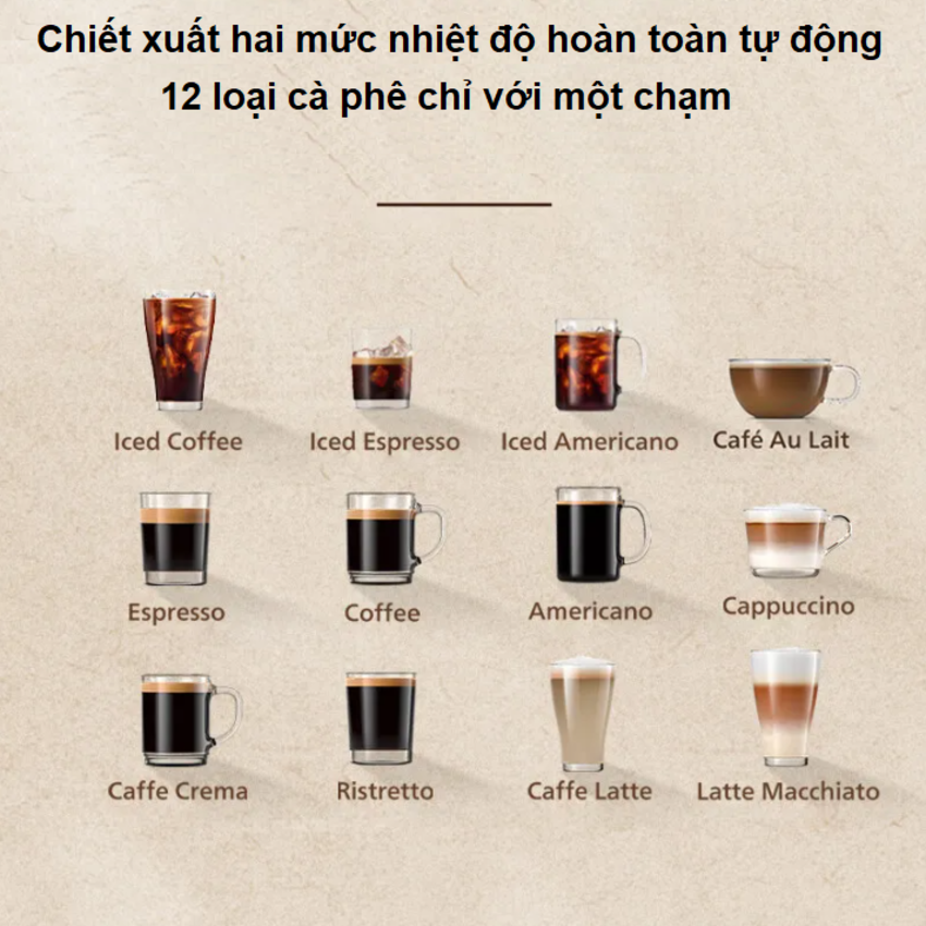 - Pha được 12 loại đồ uống cà phê và sữa chỉ với một nút bấm