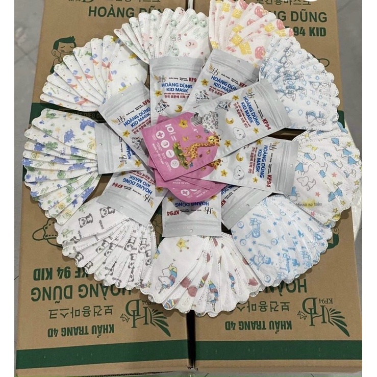 [HÀNG CÓ SẴN] COMBO 10 - 50 Chiếc Khẩu Trang 4D KF94 Chính Hãng Hoạ Tiết Cho Bé từ(1-10 tuổi) 1 hộp 10c em giao hình ngẫu nhiên theo giới tính các bé nhé ------------ ✔ Cấu trúc lọc đa lớp mật độ cao giúp ngăn chặn khói bụi, vi khuẩn, bảo vệ hệ hô hấp: 3 lớp vải không dệt và 1 lớp giấy kháng khuẩn ✔ Chất liệu vải không dệt tự nhiên, mềm mịn, không thấm nước. ✔ Quai đeo với chất liệu co giãn và mềm mại. ✔ Thiết kế 4D ôm vừa vặn đường cong khuôn mặt (kích thước khuôn mặt trung bình), phong cách Hàn Quốc, vừa khoa học vừa hợp thời trang. Với thiết kế thông minh, độc đáo cùng nhiều tính năng vượt trội, khẩu trang ngăn khói bụi 4D Land Mask của thương hiệu Wide Land là sản phẩm cần có trong mỗi gia đình giúp bảo vệ sức khỏe những người thân yêu của bạn. Khẩu trang 4D Land Mask có cấu trúc lọc đa lớp, màng lọc kháng khuẩn cao cấp giúp bạn chống khuẩn tối đa, ngăn chặn khói bụi thâm nhập vào các khe hở, gia tăng mức độ phòng chống bụi, vi khuẩn trong không khí. Lớp giấy lọc than hoạt tính ( với loại có than hoạt tính) còn hấp phụ khí, hơi độc trong không khí, ngăn chặn bụi bẩn hiệu quả, đảm bảo an toàn cho hệ hô hấp. Bên cạnh đó, khẩu trang được làm bằng chất liệu vải không dệt tự nhiên, không thấm nước khiến bề mặt luôn luôn khô thoáng.Thiết kế 4D thông minh vượt trội Khẩu trang sở hữu thiết kế 4D với không gian bên trong khá thông thoáng, mang cảm giác thoải mái, dễ chịu và không gây bí thở. Thanh nẹp mũi 2 dây bọc nhựa nguyên sinh có tác dụng ôm kín vùng mũi Với cấu trúc đặc thù, khẩu trang 4D Land Mask thông minh cho bạn thoải mái giao tiếp, đồng thời giúp phái đẹp giữ son môi ít bị phai lem vào khẩu trang. Đặc biệt, phần tai đeo co giãn nên tạo cảm giác dễ chịu, thông thoáng khi sử dụng, ít bị bí hay đau tai như sử dụng khẩu trang thông thường. Khẩu Trang 4D Land Mask KF94 được khuyên dùng tại đâu? Sản phẩm thích hợp dùng trong môi trường làm việc thông thường ngoài trời, môi trường khói bụi, có tác dụng ngăn ngừa bụi, vi khuẩn, nấm mốc,...giúp bảo vệ sức khỏe cho các thành viên trong gia đình.