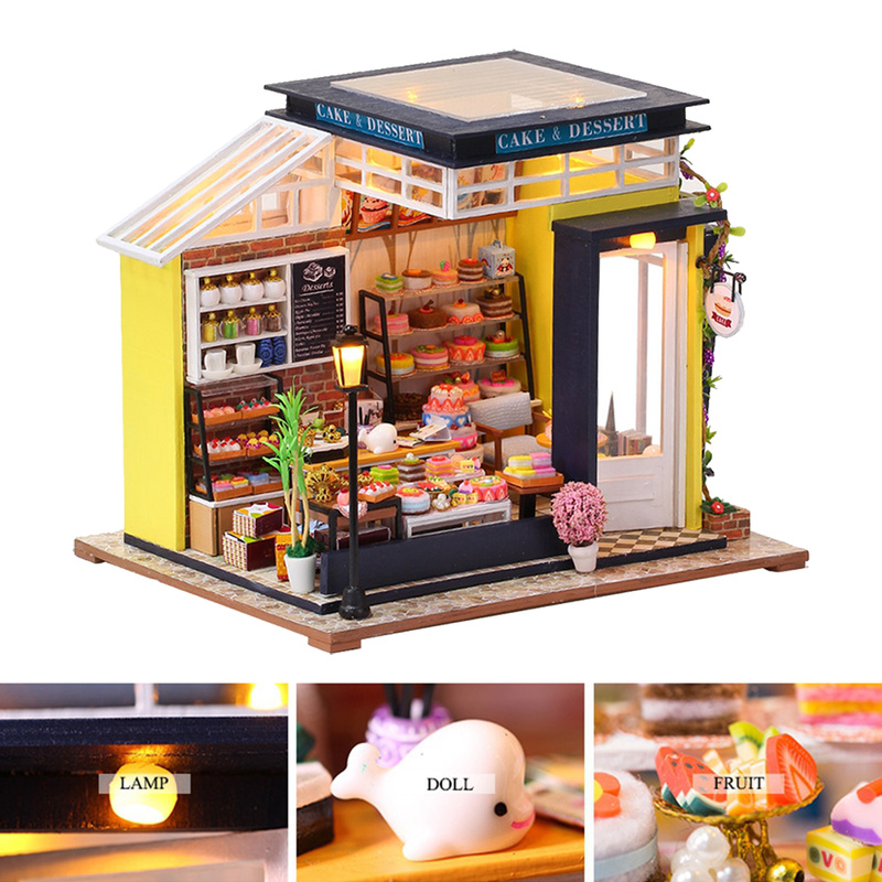 1/12 DIY miniature dollhouse kit wood handmade house with accessories assemble tool-baking shop. The model with furniture, lights, and various delicious food, plants, ornament, furniture are quite realistic and cleverly designed, without batteries(2* AAA) and glue, very lifelike, very beautiful A wonderful project/gift for kids and adults, improving creativity, develop interest cultivating parent-child affection, a great way to relax and be patience 2 styles avaliable, with dustproof cover or not, it is not finished model, you have to make it all by yourself, build yourself style home DIY self-acting hands, let you have a more colorful and festive holiday this holiday, the installation difficulty is 3 stars.