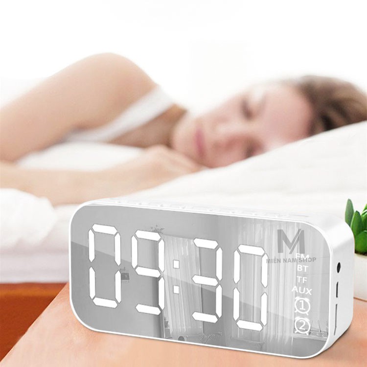 Giới thiệu [Hàng Hot] Loa Bluetooth Di Động Có Mặt Gương Tích Hợp Đồng Hồ Báo Thức, Có Khe Cắm Thẻ Nhớ